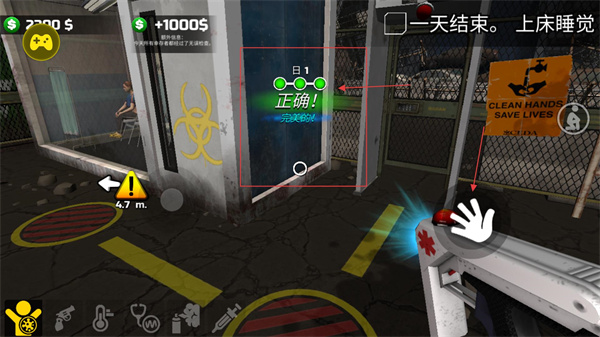4、完成當日所有幸存者的檢疫后,界面會顯示正確的日結反饋,同時獲得金幣獎勵,此時需結束當日流程,準備開啟次日的檢疫工作。