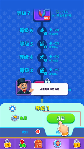 4、點擊升級按鈕提升角色等級,解鎖對應的屬性加成,增強酒店運營相關的增益效果。