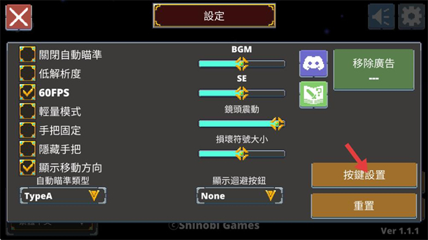 2、進入設定界面,可開啟或關閉自動瞄準、輕量模式等功能,點擊按鍵設置可自定義操作按鍵,適配操作習慣。