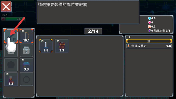 3、選中武器后,選擇左側對應的裝備部位,將武器配置到該部位,配置后可查看武器的屬性,完成武器的裝備流程。