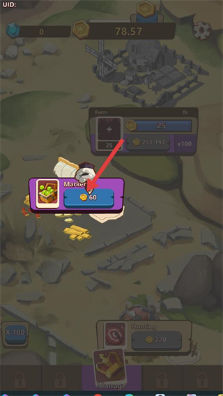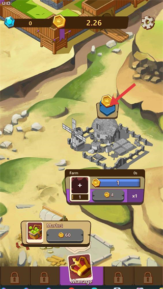1、進入游戲界面,可收集場景中的金幣資源,點擊對應資源點獲取金幣,同時通過建造農場等建筑生產資源,積累初始發展的物資基礎。