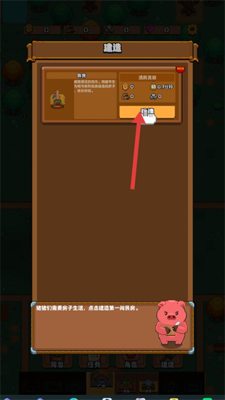 3、遭遇野生怪物時豬豬自動反擊,裝備武器提升攻擊力,布置防御設施減少家園受損。
