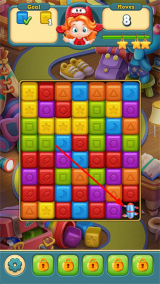 4、限時活動關卡引入反轉重力或移動齒輪等動態機制。玩具方塊會定期滑動或改變屬性,玩家必須快速適應變化并調整預定的消除路線,考驗即時反應能力。