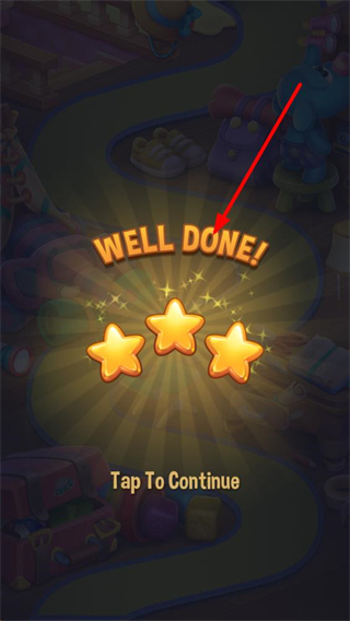 4、完成所有收集目標后成功通關,界面顯示WELLDONE并獲得三星評價,點擊TapToContinue可進入后續的游戲內容。