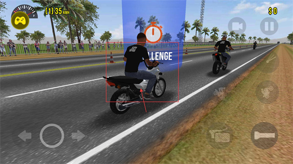 1、開局階段通過左側方向鍵控制車身平衡,需將車速穩定同時留意路面錐桶障礙,為后續特技動作預留操作空間。