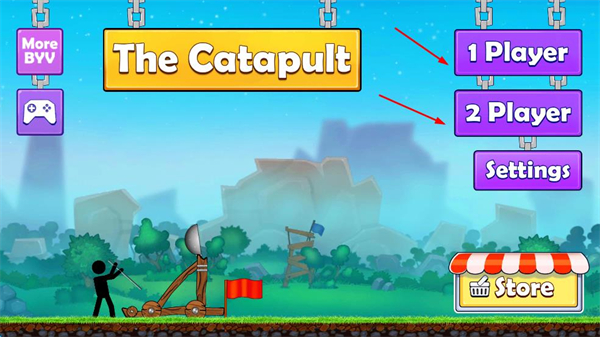 1、游戲主界面選1Player或2Player模式,進入單人或雙人對戰,也可在Settings調整設置,Store購買道具。