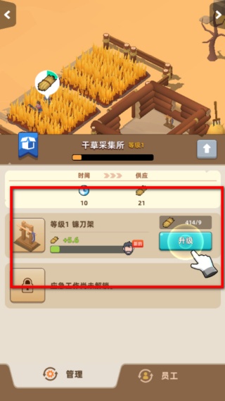 3、進入建筑的管理界面,查看當前建筑的等級與生產狀態,當滿足升級條件時點擊升級按鈕,提升建筑等級,增強其生產效率。