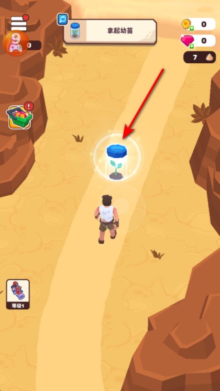 3、移動角色到幼苗道具處,拾取該道具,拾取后道具會被收納,后續可用于營地的種植或建設相關操作,豐富營地的功能。