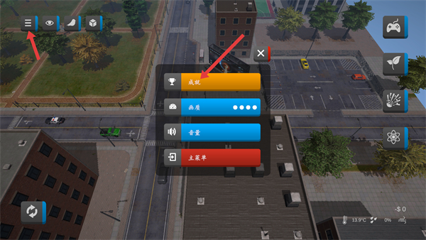1、點擊游戲界面左上角菜單按鈕,展開功能選項后選擇成就,即可進入成就任務界面,查看當前可完成的任務目標。