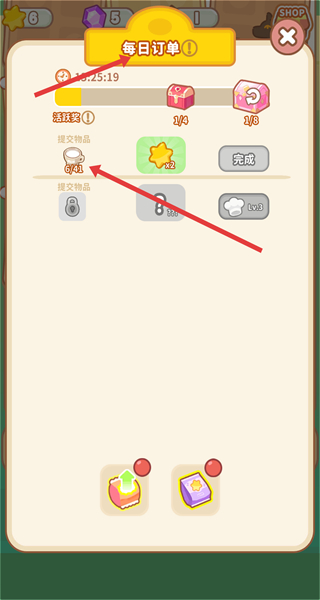 1、進入游戲后,先打開每日訂單界面,查看需要提交的物品類型,明確當前訂單的需求。