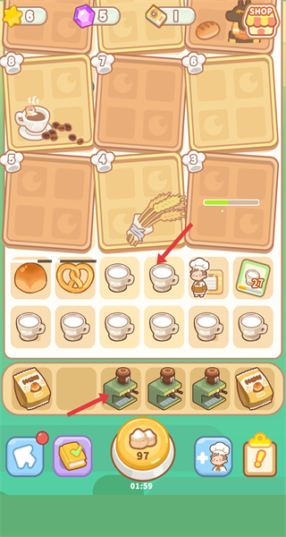 3、訂單系統提供明確的短期目標,完成訂單可獲得六角星獎勵,驅使玩家有針對性地進行食物合成與資源管理。