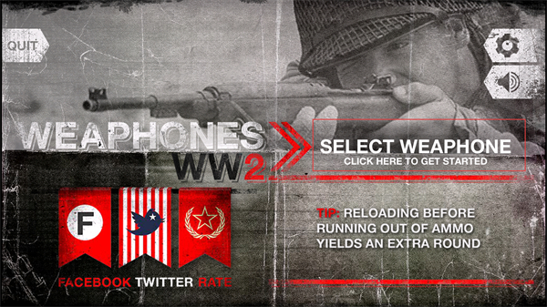 1、點擊SELECT WEAPHONE區域,進入武器選擇界面,開始體驗二戰經典槍械的模擬操作。