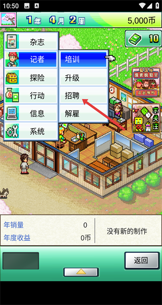 2、在主界面里,找到記者對應的功能選項并點擊,展開對應的功能菜單后,選擇其中的招聘選項,著手準備開展人員募集的相關操作。
