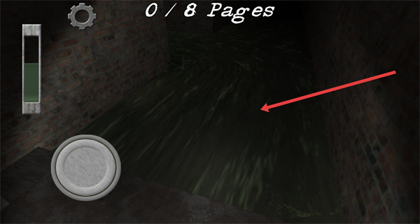 2、進入水流通道新場景后需留意地面區域的細節,可通過底部按鈕控制移動,探索該區域以尋找隱藏的頁面道具。
