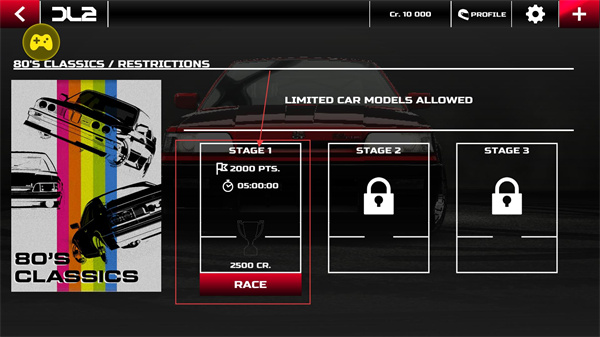 4、80年代經典車型賽事的第一階段可參與,需在5分鐘內獲得2000積分,完成后能得到2500貨幣獎勵,參與可熟悉限定車型。