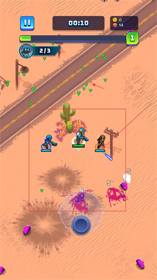 2、在戰斗中敵人會釋放范圍傷害,需及時移動躲避,同時持續攻擊敵人積累分數,優先清理威脅較高的敵人,減少戰場干擾。