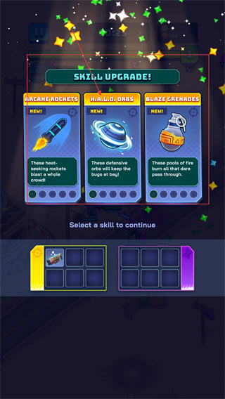 2、技能組合創造獨特流派,選擇召喚炮臺技能可構建防御型打法,搭配范圍傷害的終極技能則能瞬間清理密集蟲群。