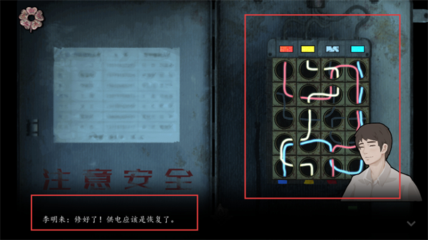 4、完成線路的合理連接,讓電路面板恢復正常,確認供電恢復后,完成該解謎環節,推進游戲進程。