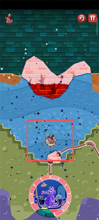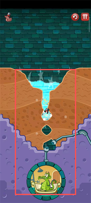 3、調整場景內的地形或管道,引導水流順利抵達小鱷魚的洗澡區域,滿足其洗澡需求,完成關卡核心目標。