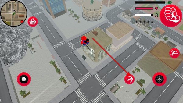 1、操控角色在城市場景中移動,利用界面的功能按鈕觸發不同能力,在建筑間穿梭探索,同時留意場景中的互動目標。