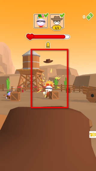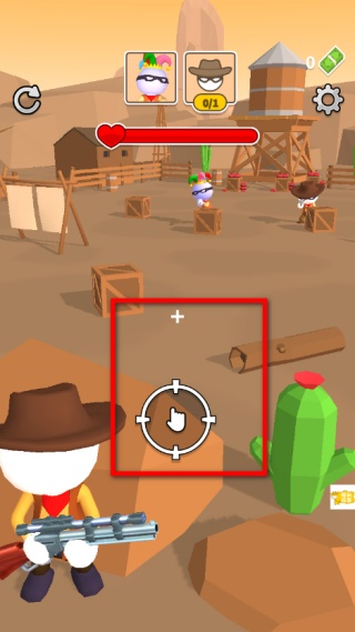 1、在西部場景中瞄準目標,點擊射擊標識鎖定要攻擊的對象,準備發起射擊操作,推進游戲的任務流程。