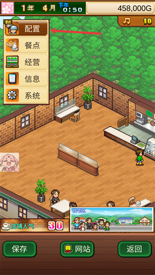 2、打開菜單后,選擇【配置】選項,能對店內布局、設施擺放等進行調整,合理配置可優化經營環境,助力提升店鋪運營效率。