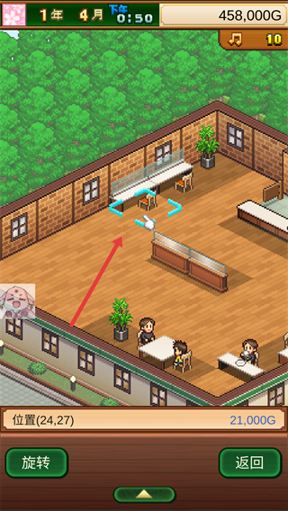 4、選好座位設施后,拖動到店內合適位置,還可點擊【旋轉】調整朝向,完成放置后確認,就能為顧客打造新的就座區域啦。