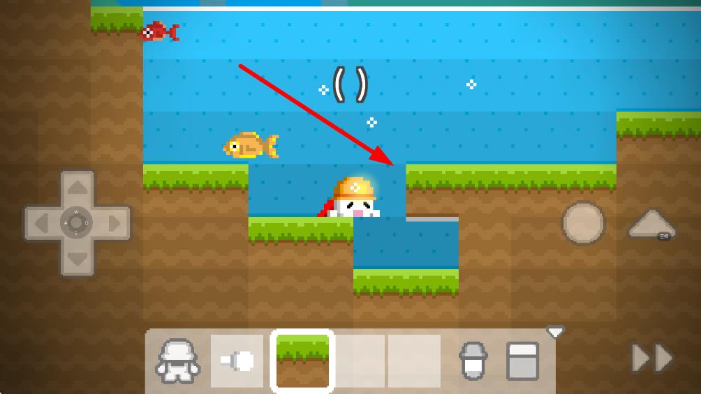 3、將選中的積木放置到對應區域,搭建出可通行的路徑,控制角色移動至搭建好的區域,進入包含水域與魚類的新場景,繼續推進冒險。