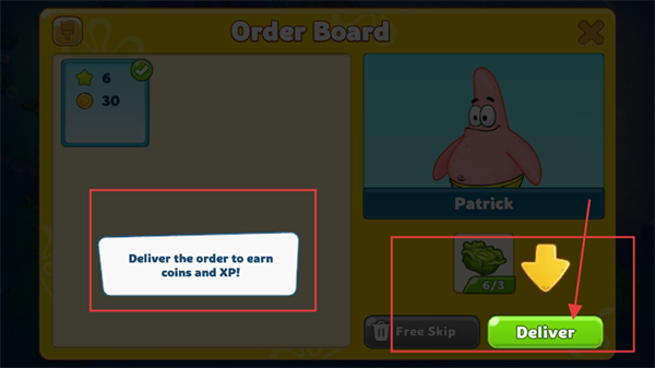 4、當收集夠足夠的生菜后,回到訂單板點擊Deliver按鈕,提交訂單來獲取金幣和經驗獎勵。