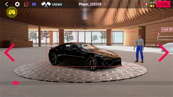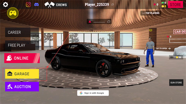 1、點擊左側【GARAGE】可進入車庫界面,初始展示的黑色跑車是基礎車型,適配常規駕駛場景,后續可通過游戲玩法解鎖更多車型。