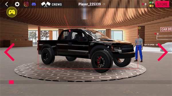 2、通過左右箭頭可切換展示車輛,如黑色皮卡車型,這類車輛側重實用性,適合復雜路況或運輸類任務,可根據玩法需求選擇對應車型。