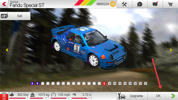 1、查看藍色賽車的屬性信息,確認后點擊OK按鈕,完成車輛選擇并進入后續的競速環節。