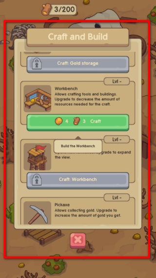 1、進入制作建造界面,湊齊對應的資源后點擊制作工作臺,解鎖更多工具與建筑的制作權限。