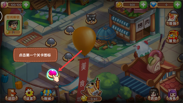 1、進入主界面后找到關卡圖標點擊對應的圖標即可開啟關卡,界面還顯示資源即將解鎖角色等信息,可通過簽到首充等功能獲取額外道具。