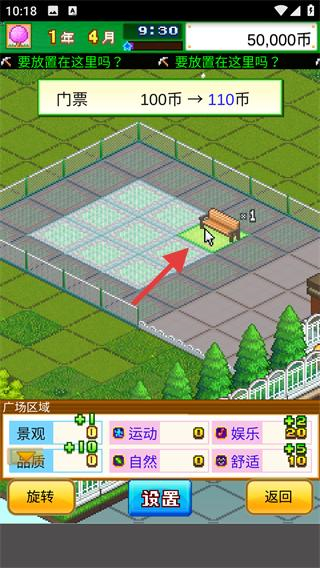 4、選擇合適的場地位置,調整設施的擺放區域,點擊設置按鈕完成布置,提升公園的功能與吸引力。
