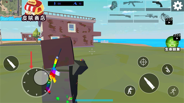 1、點擊【開始游戲】按鈕即可進入游戲,同時可留意右上角的皮膚商店,后續可解鎖角色外觀,先進入游戲開啟對局。