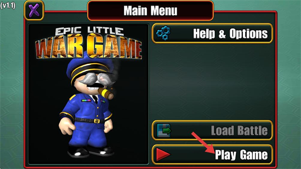1、游戲主菜單提供開始游戲、加載戰役等功能,是一款卡通風格的回合制策略戰棋游戲,主打小規模單位對戰玩法。