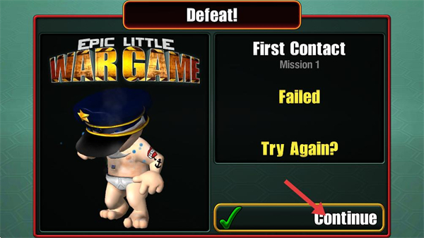 4、若任務失敗會顯示Defeat界面,可選擇重新挑戰關卡,游戲通過關卡制推進,失敗后支持重復嘗試調整戰術。