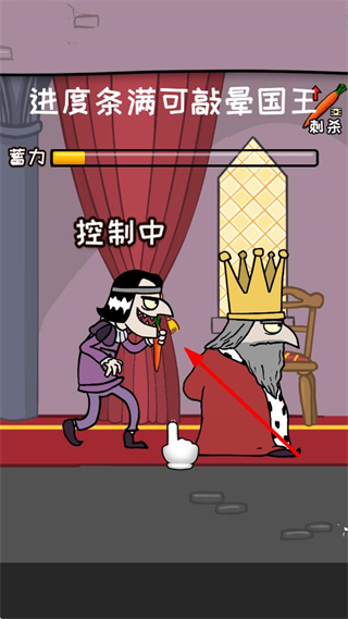 2、游玩過程中觀察蓄力進度條,待進度條填滿后,可對國王進行敲擊操作使其暈倒,以此推進游戲的進程。