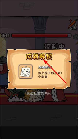 3、成功當上國王后,若完成擊殺刺客的操作,會觸發成就解鎖,彈出成就提示界面,展示對應的成就內容。