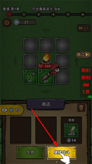 2、完成道具購買操作后,點擊界面下方的繼續戰斗按鈕,即可進入戰斗場景,讓角色攜帶道具開啟對戰。