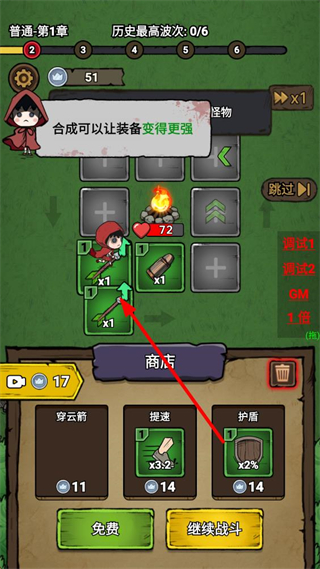 4、戰斗間隙回到商店界面,將相同的裝備進行合成操作,能提升裝備的強度,增強角色的戰斗能力以應對后續挑戰。