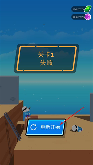 4、若關卡失敗如被敵人擊中,點擊重新開始按鈕,調整射擊策略,優化彈道規劃,再次挑戰通關。
