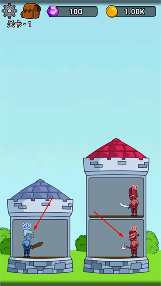 1、進入游戲關卡,觀察雙方城堡及士兵,如藍方20、紅方上下各30,規劃士兵移動路徑,點擊觸發戰斗。