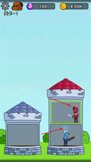 3、利用金幣調整士兵部署,將藍方士兵移至紅方城堡樓層,匹配敵方兵力,優化戰斗布局再挑戰。