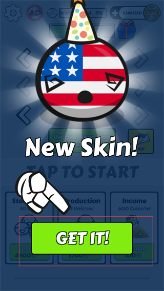2、點擊GETIT按鈕,獲取新皮膚,更換國家球的外觀,讓其呈現出不同的視覺效果。