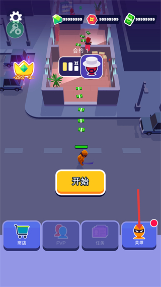 2、點擊主界面英雄按鈕可進入英雄相關界面,這是查看、選擇已解鎖人物的入口,進入此界面就能看到所有可使用的人物角色。