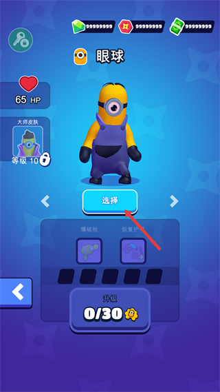 4、在英雄列表中選中某個人物,會進入該角色的詳情界面,點擊選擇按鈕即可選定該人物,將其設為當前游戲中使用的角色。