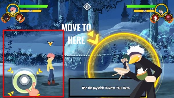 1、拖動搖桿控制角色移動,按照提示移動到指定區域,調整角色在戰場中的位置,為后續的攻防操作做準備。