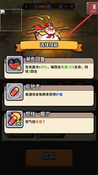 4、拾取道具后會進入技能選擇界面,可從多個技能中挑選一個學習,不同技能效果各異。